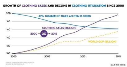Once clothing is produced, sold and most often worn, there is then the issue of the clothing disposal and textile waste created by the industry and by consumers. Approximately twenty-six billion pounds of clothing and textiles end up in landfills each year. Every second, the equivalent of an entire garbage truck of textiles is landilled of burned- creating even more carbon in the atmosphere. Moreover, waste and surplus from the textile industry (that hasn’t even gotten to the market) result in even more waste to the landfills. People are buying more and wearing their items 36% less than they did 15 years ago, causing an increased use of resources and the accumulation of textile waste. There is a fundamental issue with the current fashion business model where revenues are based almost entirely on selling more products and on 52 new fashion seasons a year. North Americans are shipping the problem of textile waste across the globe yet not addressing a simple issue of clothing consumption in excess.